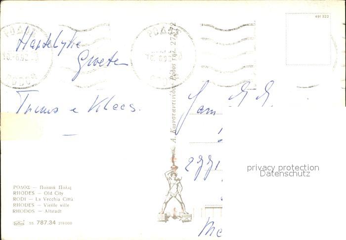 old postcard Rhodos Rhodes aegaeis Altstadt postalisch gelaufen Erhaltung siehe scans