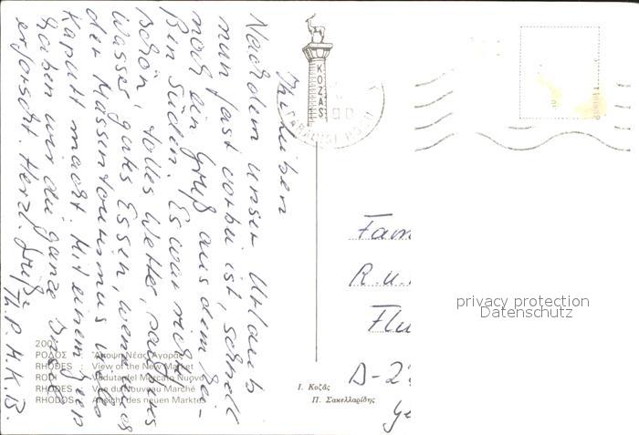 old postcard Rhodos Rhodes aegaeis Ansicht des neuen Marktes Hafen Schiffe Palast postalisch gelaufen Erhaltung siehe scans