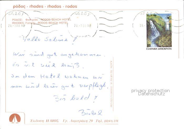 old postcard Rhodos Rhodes aegaeis Beach Hotel postalisch gelaufen Erhaltung siehe scans
