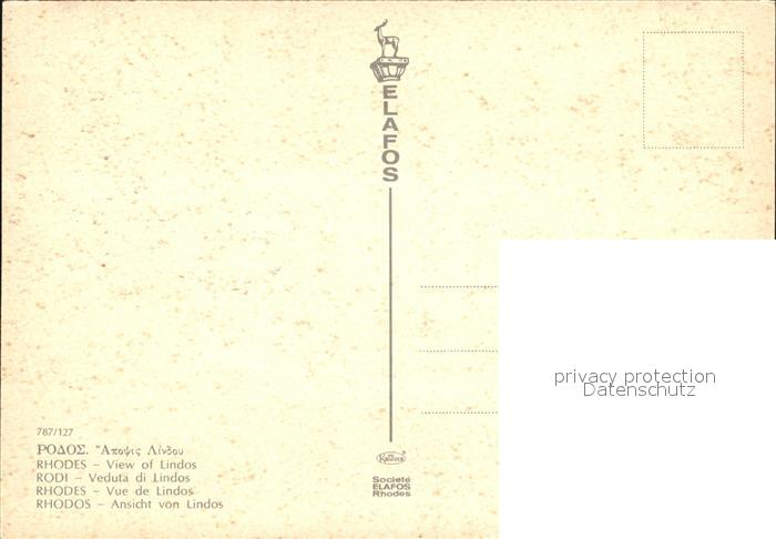 Rhodos Rhodes aegaeis Blick auf Lindos postalisch nicht gelaufen Erhaltung siehe scans