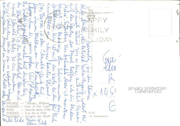 old postcard Rhodos Rhodes aegaeis Blick ueber die Stadt Strand postalisch gelaufen Erhaltung siehe scans