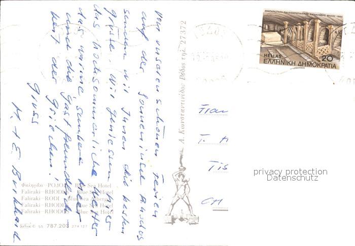 old postcard Rhodos Rhodes aegaeis Blue Sea Hotel postalisch gelaufen Erhaltung siehe scans