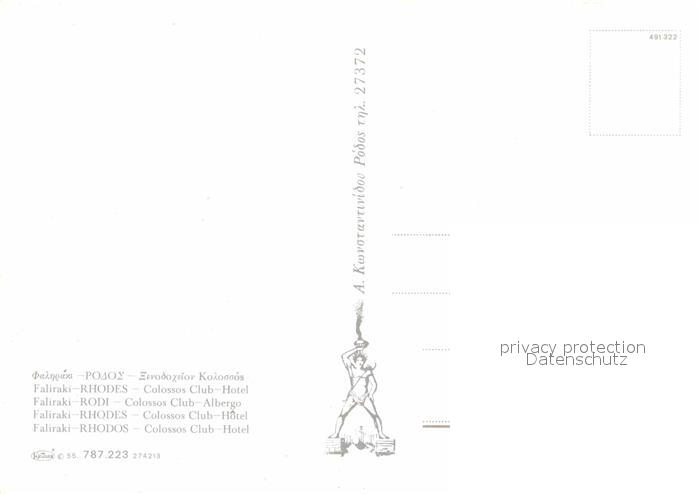 Rhodos Rhodes aegaeis Colossos Club Hotel postalisch nicht gelaufen Erhaltung siehe scans [AndreD76]