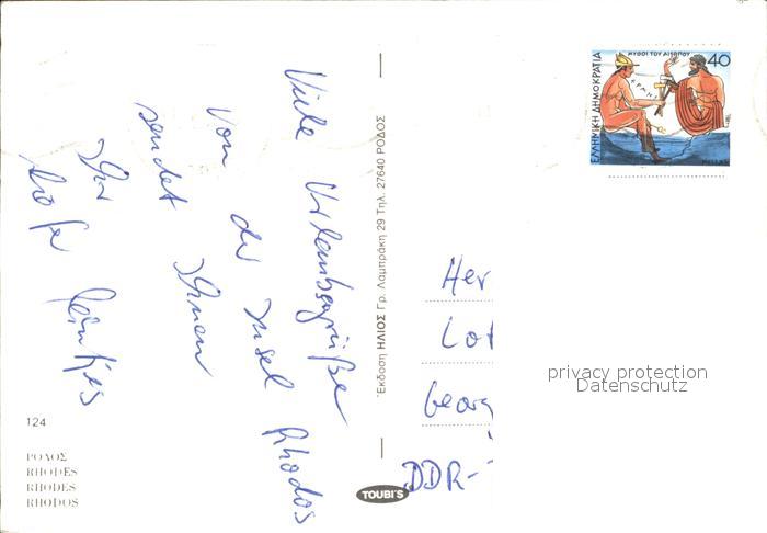 old postcard Rhodos Rhodes aegaeis Denkmal Festung postalisch gelaufen Erhaltung siehe scans