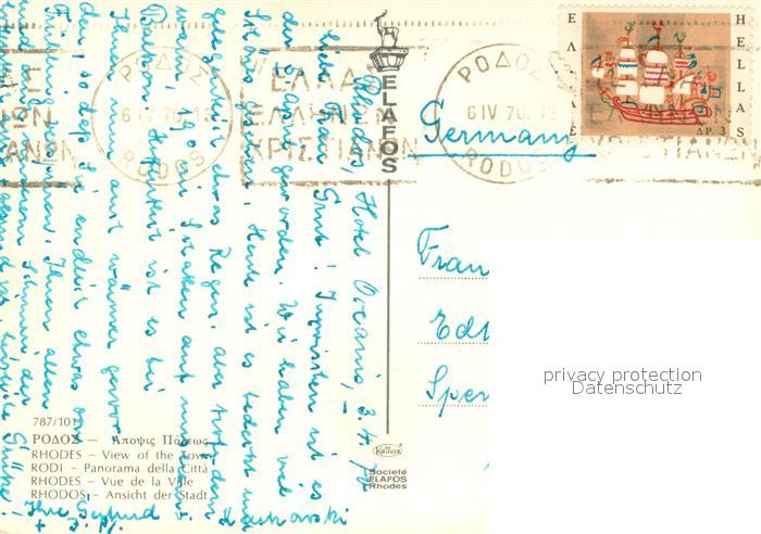 13631091 Rhodos Rhodes aegaeis Fliegeraufnahme postalisch gelaufen Erhaltung siehe scans [FriedD77] old postcard Frie Katcode 11190