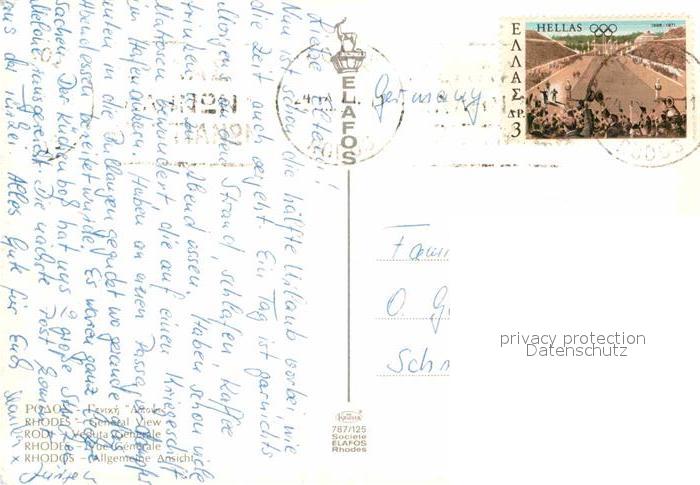 old postcard Rhodos Rhodes aegaeis Fliegeraufnahme postalisch gelaufen Erhaltung siehe scans [FriedD77]