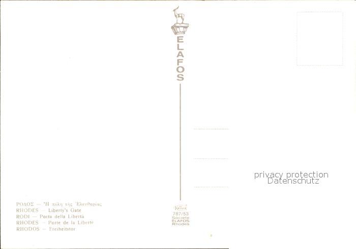 Rhodos Rhodes aegaeis Freiheitstor postalisch nicht gelaufen Erhaltung siehe scans [KathaD79]
