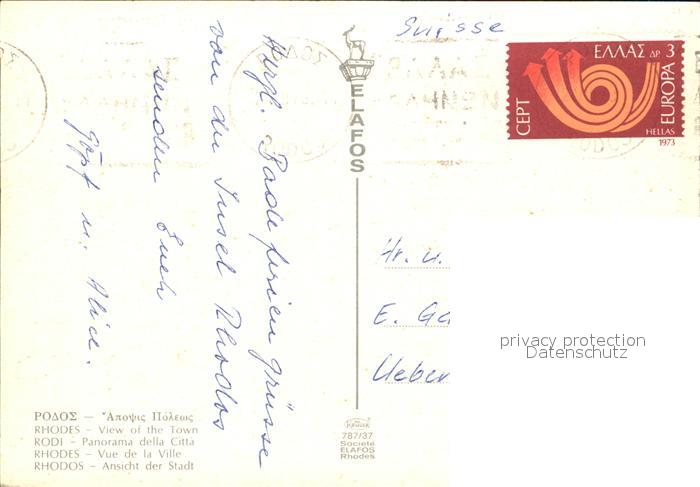 old postcard Rhodos Rhodes aegaeis Hafen postalisch gelaufen Erhaltung siehe scans [AndreD76]