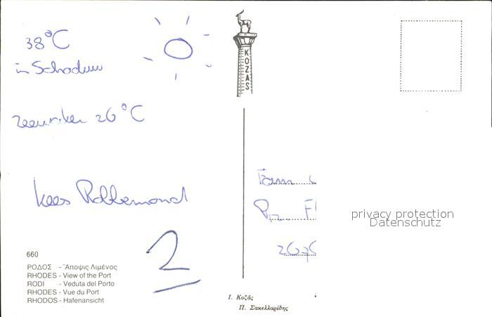Rhodos Rhodes aegaeis Hafen postalisch nicht gelaufen Erhaltung siehe scans