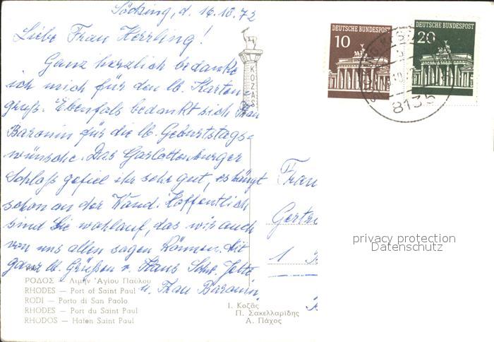 old postcard Rhodos Rhodes aegaeis Hafen Saint Paul postalisch gelaufen Erhaltung siehe scans
