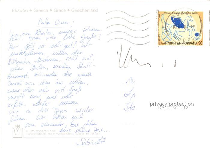 old postcard Rhodos Rhodes aegaeis Hafeneinfahrt Festung Statue Elafos Elafina postalisch gelaufen Erhaltung siehe scans