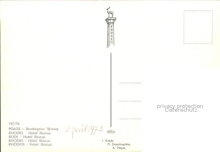 Rhodos Rhodes aegaeis Hotel Ibiscus postalisch nicht gelaufen Erhaltung siehe scans