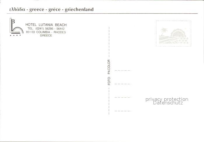 Rhodos Rhodes aegaeis Hotel Lutania Beach postalisch nicht gelaufen Erhaltung siehe scans