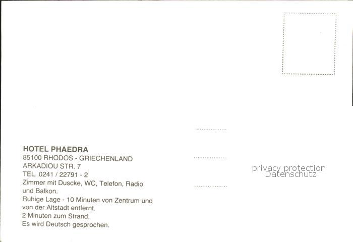 Rhodos Rhodes aegaeis Hotel Phaedra postalisch nicht gelaufen Erhaltung siehe scans