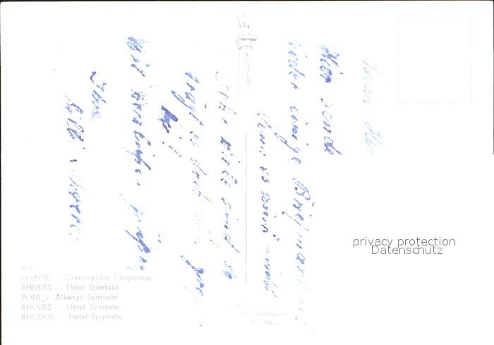 Rhodos Rhodes aegaeis Hotel Spartalis postalisch nicht gelaufen Erhaltung siehe scans