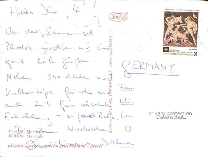 old postcard Rhodos Rhodes aegaeis Leuchtturm Hirsch Mandraki postalisch gelaufen Erhaltung siehe scans