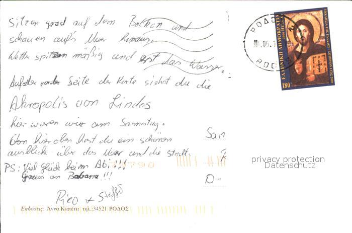 old postcard Rhodos Rhodes aegaeis Lindos postalisch gelaufen Erhaltung siehe scans