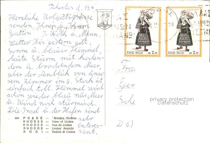 old postcard Rhodos Rhodes aegaeis Lindos postalisch gelaufen Erhaltung siehe scans [AndreD76]