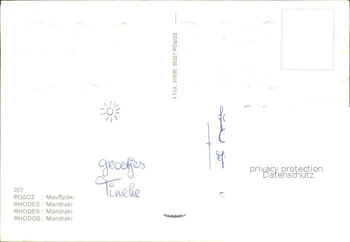 old postcard Rhodos Rhodes aegaeis Mandraki Boote Hafen postalisch gelaufen Erhaltung siehe scans