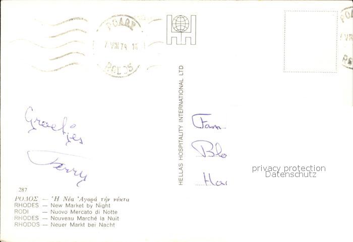 old postcard Rhodos Rhodes aegaeis Markt Nachtaufnahme postalisch gelaufen Erhaltung siehe scans
