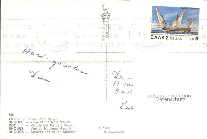 old postcard Rhodos Rhodes aegaeis Neuer Markt postalisch gelaufen Erhaltung siehe scans [LiesaD40]