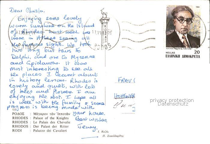 old postcard Rhodos Rhodes aegaeis Palast Ritter postalisch gelaufen