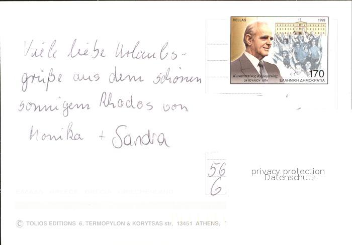 old postcard Rhodos Rhodes aegaeis Panorama Bucht Ritterpalast Inselbewohner Hafen Segelschiff postalisch gelaufen Erhaltung siehe scans
