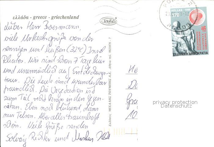 old postcard Rhodos Rhodes aegaeis Panorama Strand Palast Sonne postalisch gelaufen Erhaltung siehe scans