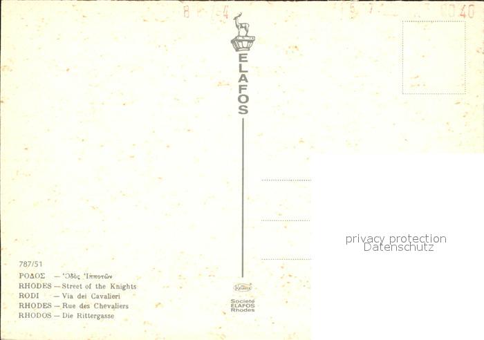 Rhodos Rhodes aegaeis Rittergasse postalisch nicht gelaufen Erhaltung siehe scans