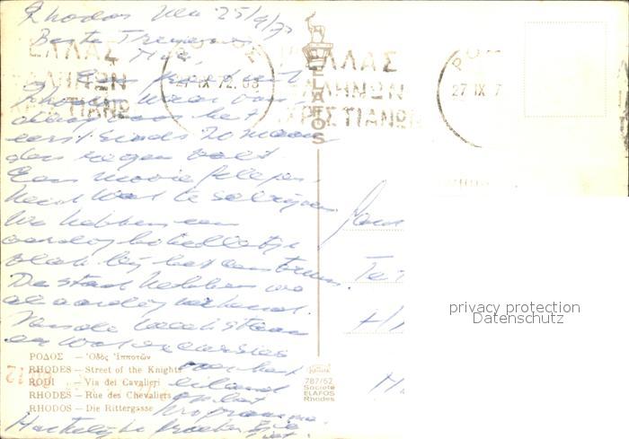old postcard Rhodos Rhodes aegaeis Rittergasse postalisch gelaufen Erhaltung siehe scans