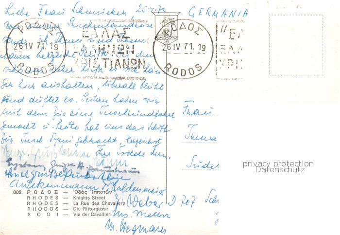 old postcard Rhodos Rhodes aegaeis Rittergasse postalisch gelaufen Erhaltung siehe scans [WerneD78]