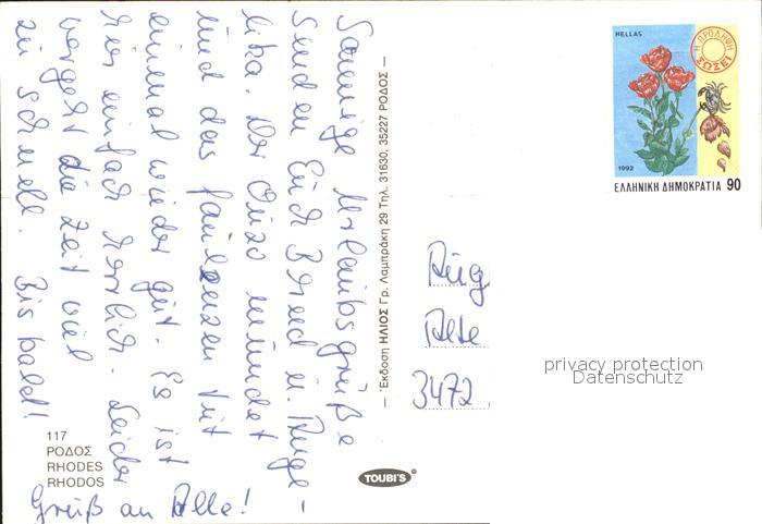 Rhodos Rhodes aegaeis Skulptur Palast Tempel Ruine Antike Hafeneinfahrt Statue Elafos postalisch nicht gelaufen Erhaltung siehe scans