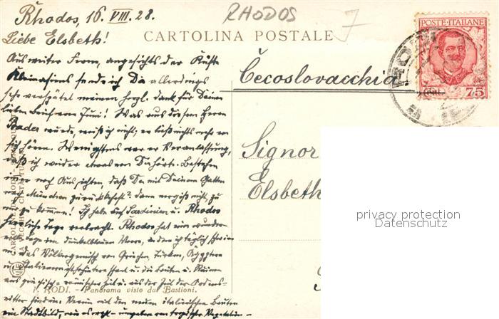 old postcard Rhodos Rhodes aegaeis Stadtblick postalisch gelaufen Erhaltung siehe scans [WerneD78]