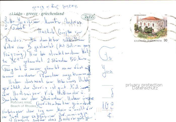 old postcard Rhodos Rhodes aegaeis Strand postalisch gelaufen Erhaltung siehe scans