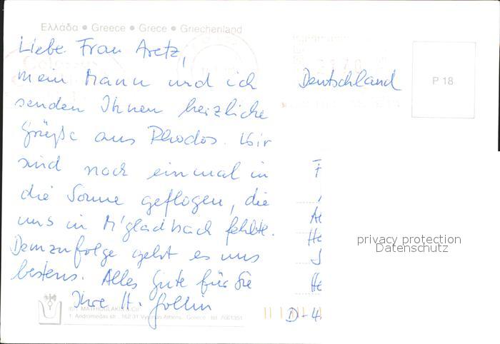 old postcard Rhodos Rhodes aegaeis Strand Hafeneinfahrt postalisch gelaufen Erhaltung siehe scans