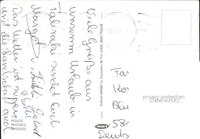 old postcard Rhodos Rhodes aegaeis Windmills Temple Apollo Fillerimos Embona postalisch gelaufen Erhaltung siehe scans