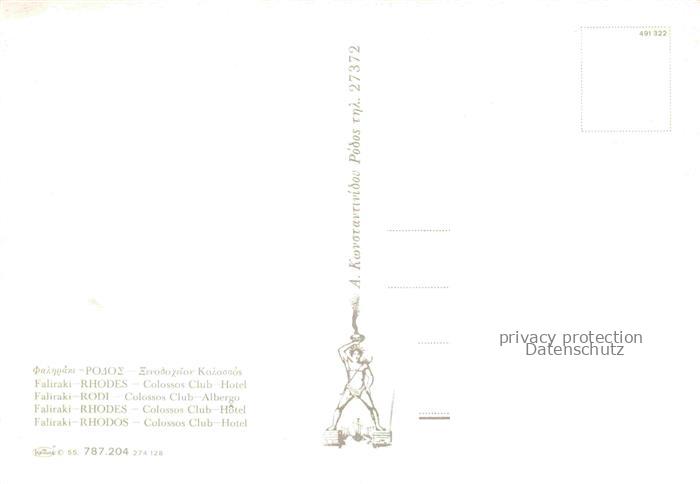 74075352 RHODOS Rhodes Greece Colossos Club Hotel Strand postalisch nicht gelaufen Erhaltung siehe scans [WerneD78] KatCode: 11190