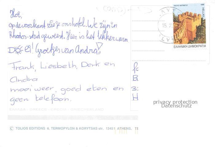 74005675 old postcard RHODOS Rhodes Greece Fliegeraufnahme Hotel Cosmopolitan Pool Panorama postalisch gelaufen Erhaltung siehe scans [WerneD78] KatCode: 11190