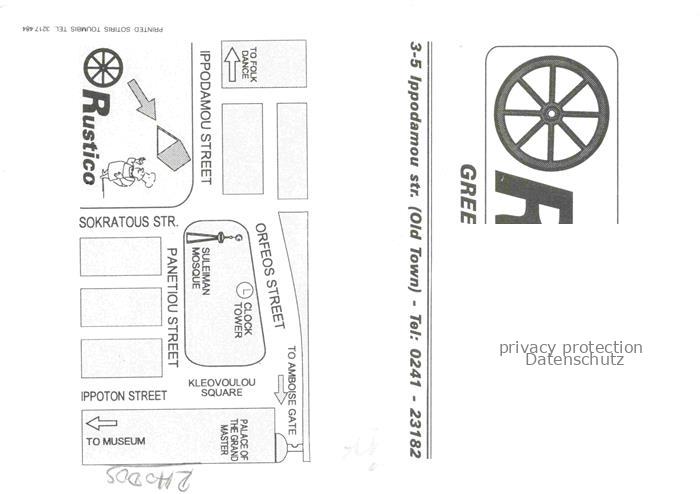 74015053 RHODOS Rhodes Greece Tavern Rustico postalisch nicht gelaufen Werbekarte (keine Postkarte) Erhaltung siehe scans [FriedD77] KatCode: 11190