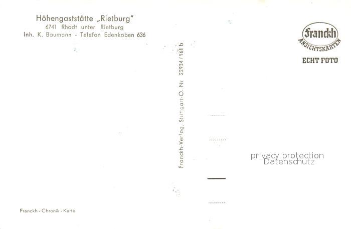 73273038 Rhodt Rietburg Burgruine Rietburg Hoehengaststaette Franckh Chronik Karte postalisch nicht gelaufen Erhaltung siehe scans [FriedD77] KatCode: 11110007337066