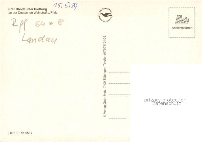 73670277 Rhodt Rietburg Panorama Ortsmotive postalisch nicht gelaufen Erhaltung siehe scans [WerneD78] KatCode: 11110007337066