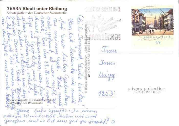 72523744 alte Postkarte Rhodt Rietburg Schatzkaestlein Deutsche Weinstrasse postalisch gelaufen Erhaltung siehe scans KatCode: 11110007337066