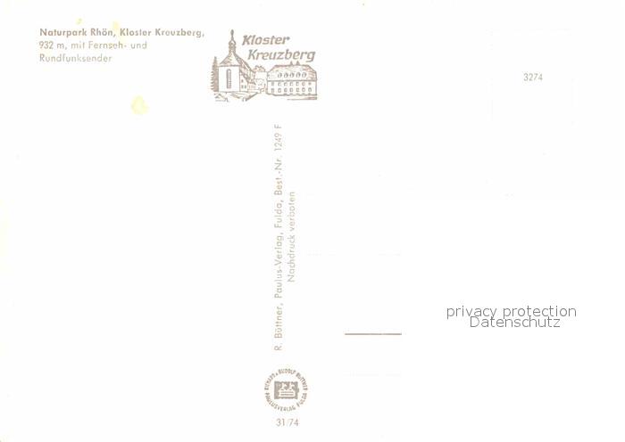 72667516 Rhoen Region Kloster Kreuzberg postalisch nicht gelaufen Erhaltung siehe scans [AndreD76] KatCode: 11110006631021