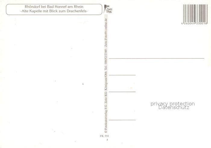 73239039 Rhoendorf Alte Kapelle Drachenfels postalisch nicht gelaufen Erhaltung siehe scans [NatalD47] KatCode: 11110005382008