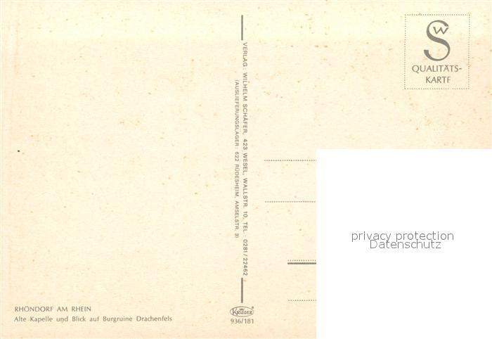 73024519 Rhoendorf Alte Kapelle mit Burgruine Drachenfels postalisch nicht gelaufen Erhaltung siehe scans [WerneD78] KatCode: 11110005382008