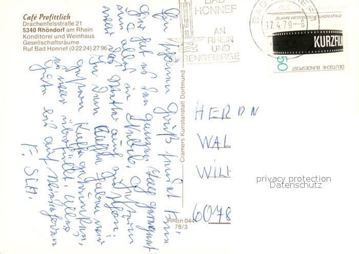 73250023 alte Postkarte Rhoendorf Cafe Profittlich Konditorei Weinhaus Fachwerkhaus Brunnen postalisch gelaufen Erhaltung siehe scans [FriedD77] KatCode: 11110005382008