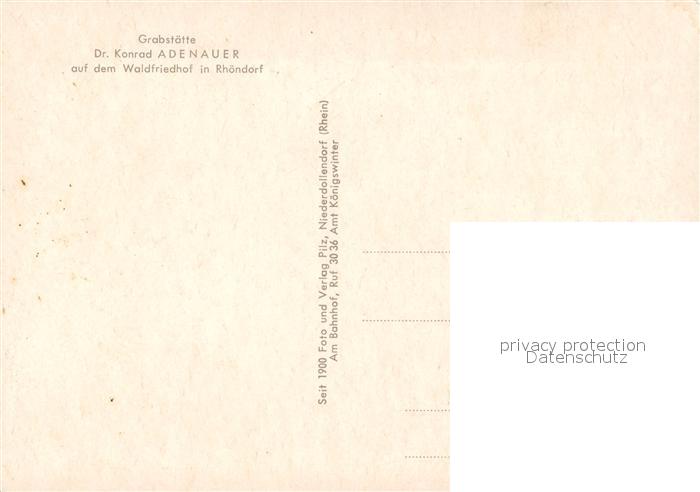 73169600 Rhoendorf Grabstaette Dr Konrad Adenauer Waldfriedhof postalisch nicht gelaufen Erhaltung siehe scans [FriedD77] KatCode: 11110005382008