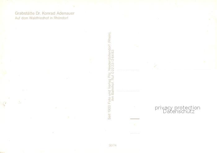 73209098 Rhoendorf Grabstaette Dr Konrad Adenauer postalisch nicht gelaufen Erhaltung siehe scans [WerneD78] KatCode: 11110005382008