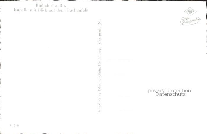 72061995 Rhoendorf Kapelle Drachenfels postalisch nicht gelaufen Erhaltung siehe scans KatCode: 11110005382008