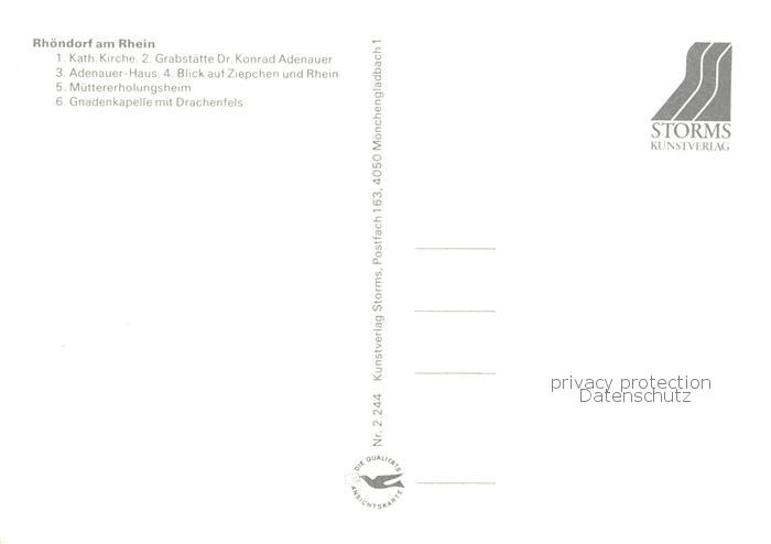 73796026 Rhoendorf Kath Kirche Grabstaette Dr Adenauer Ziepchen und Rhein Muettererholungsheim Gnadenkapelle mit Drachenfels postalisch nicht gelaufen Erhaltung siehe scans [WerneD78] KatCode: 11110005382008
